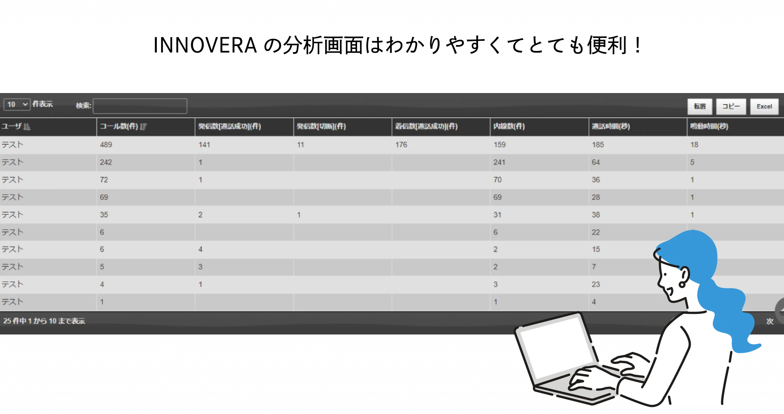 この店舗は電話応対をきちんとできている、ここはアカウント数が少ないけれど受電数は多い、など…そういった分析をさせていただいております。