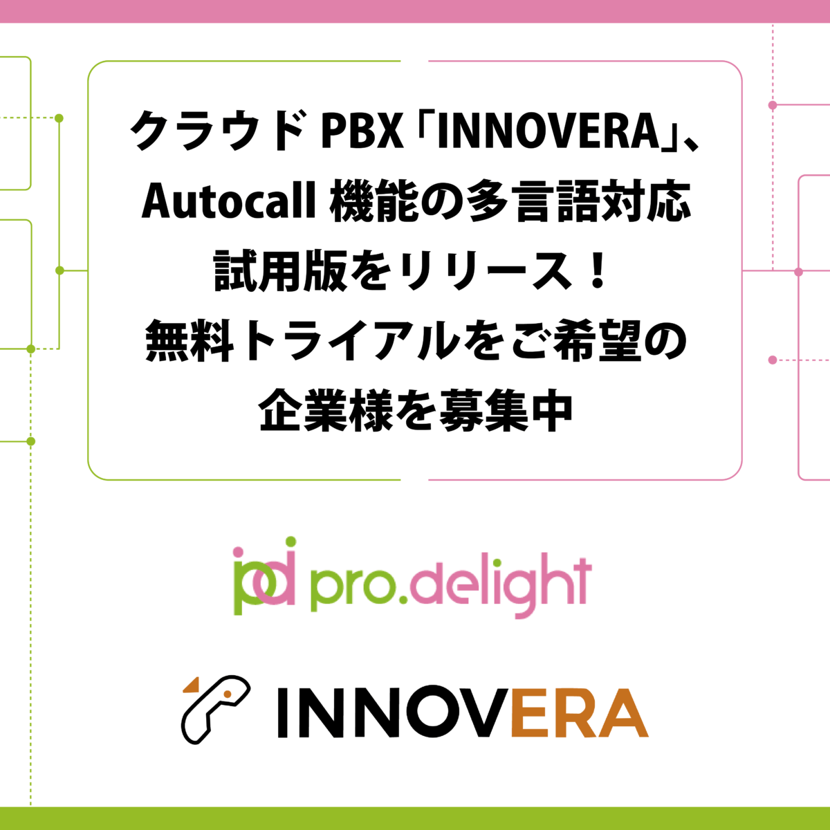 電話のDXを推進する株式会社プロディライト(大阪市中央区:代表取締役社長 小南 秀光、証券コード:5580、以下プロディライト)は2025年9月29日、クラウドPBX「INNOVERA 2.0」にてAutocall機能の多言語対応試用版をリリースし、期間限定で利用料&通話料無料トライアルの募集を開始したことをお知らせいたします。