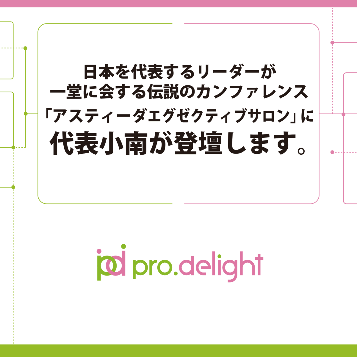 日本を代表するリーダーが一堂に会する伝説のカンファレンス「アスティーダエグゼクティブサロン」に代表小南が登壇します。