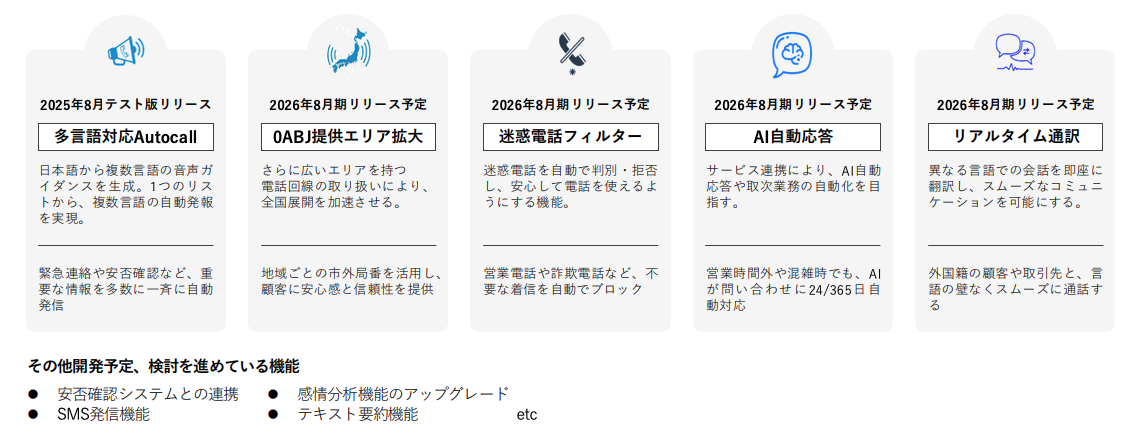 そのためAIや他社サービス連携を駆使することで、顧客満足度を最大化する新たな価値を提供し、音声通話を通じて様々な課題に取り組んで参ります。
