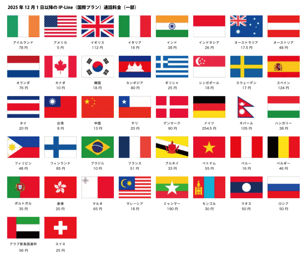 この度プロディライトでは、「IP-Line(国際プラン)」の通話料金について、2025年12月1日より改定することとなりましたので、下記の通りお知らせいたします。