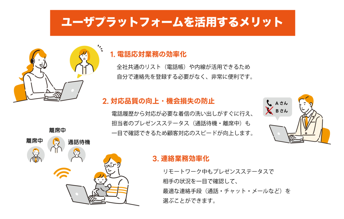 コールセンター業務やリモートワークにも役立つ、ユーザプラットフォーム機能