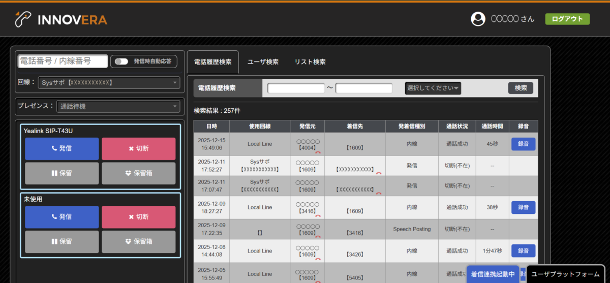 クラウドPBX「INNOVERA」ユーザプラットフォーム機能のWEBページを公開しました。