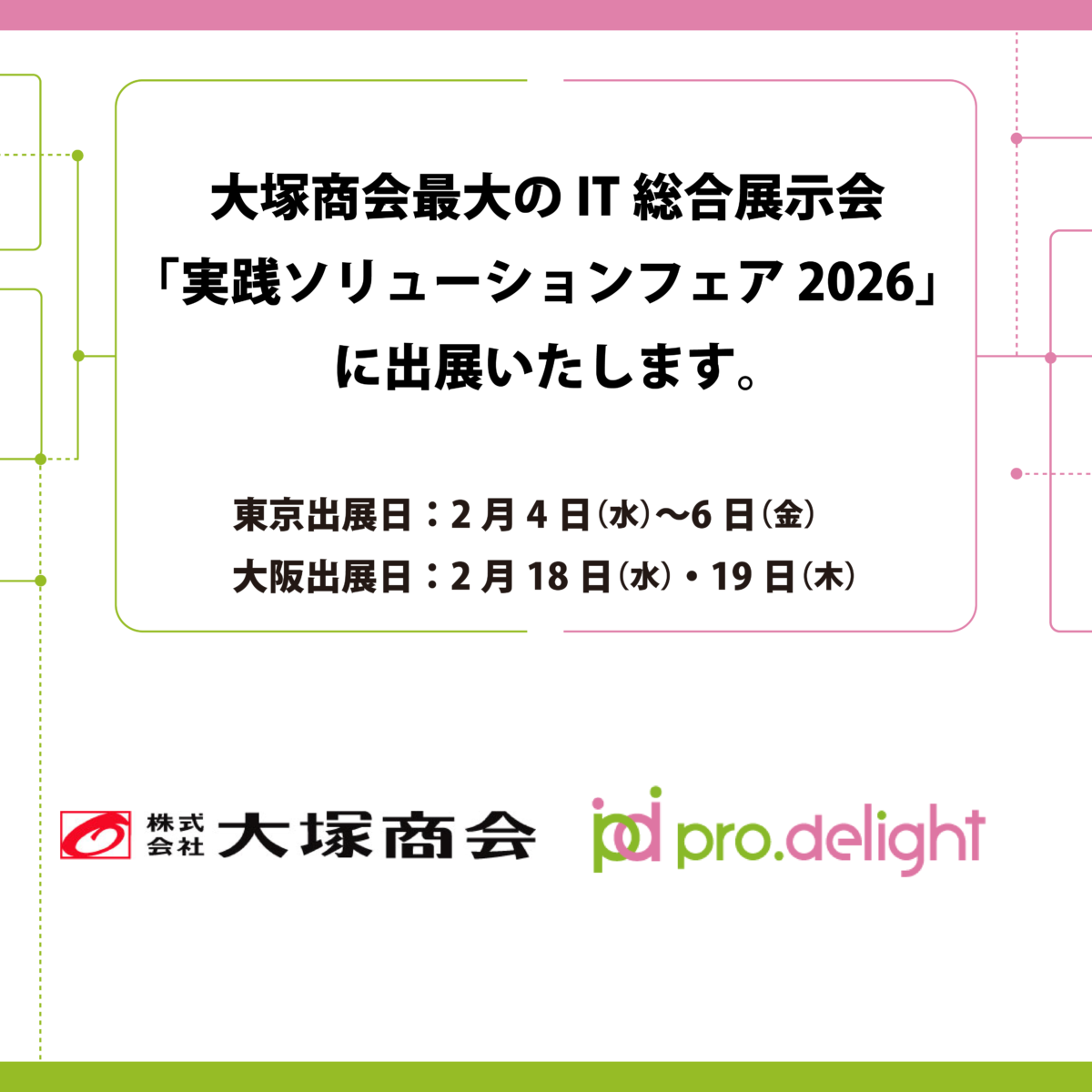 電話のDXを推進する株式会社プロディライト(大阪市中央区:代表取締役社長 小南 秀光、証券コード:5580、以下プロディライト)は、株式会社大塚商会(本社:東京都千代田区、代表取締役社長:大塚裕司、以下大塚商会)主催のIT総合展示会「実践ソリューションフェア 2026」に2月4日(水)〜6日(金)は東京会場、2月18日(水)・19日(木)は大阪会場にて出展いたします。