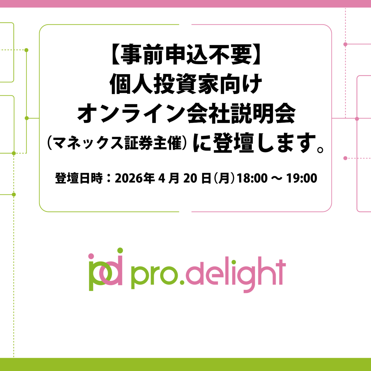 電話のDXを推進する株式会社プロディライト(大阪市中央区:代表取締役社長 小南 秀光、証券コード:5580、以下プロディライト)は2026年4月20日(月)、マネックス証券主催の個人投資家向けオンライン会社説明会に登壇します。
