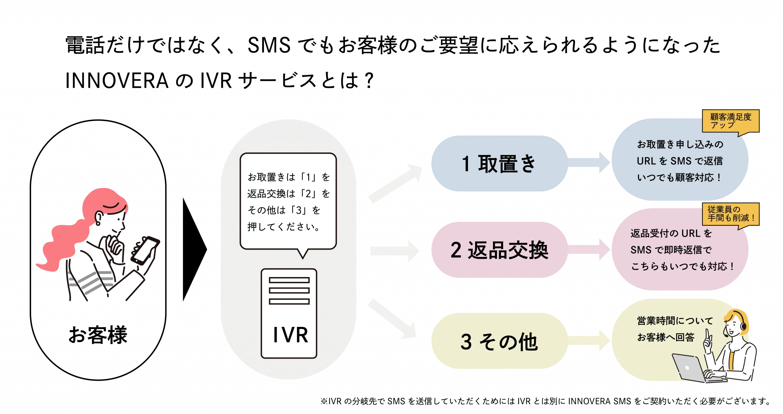 ※1 「○○の場合は1 を、△△の場合は2 を押してください」という音声が再生され、番号を押してもらうことで問い合わせの振り分けを行うシステム。