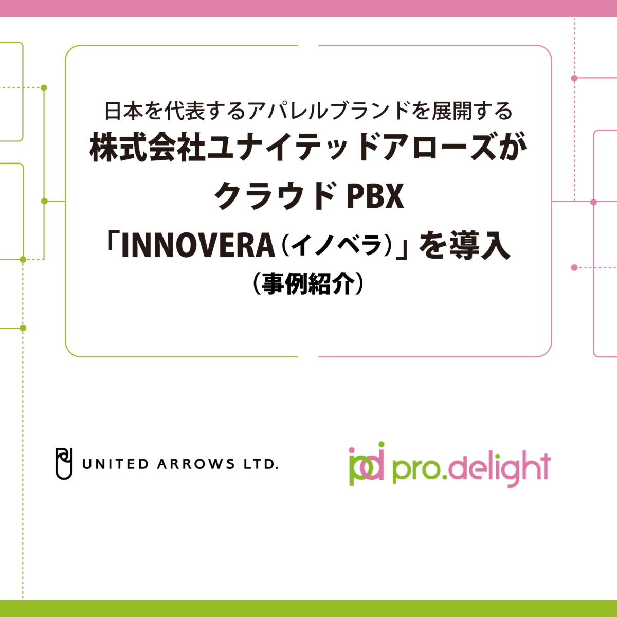 電話のDXを推進する株式会社プロディライト(大阪市中央区:代表取締役社長 小南 秀光、証券コード:5580、以下プロディライト)は2026年4月16日、紳士服・婦人服および雑貨等の企画・仕入および販売を行う株式会社ユナイテッドアローズ(東京都渋谷区:代表取締役 社長執行役員 CEO 松崎 善則、証券コード:7606、以下ユナイテッドアローズ)へのクラウドPBX「INNOVERA」の導入事例を公開しました。